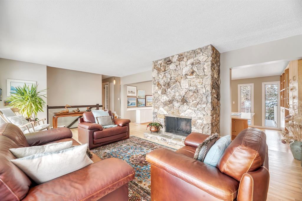 Offered for the first time ever on MLS, this exceptional ridge home sits on one of Parkland’s most desirable streets, delivering unobstructed panoramic views over Fish Creek Park with the Rocky Mountains stretching across the horizon. Extensively renovated throughout and meticulously maintained, the home offers 3,462 square feet above grade plus a fully developed basement with a wet bar area. Thoughtfully updated while preserving its warmth and character, the layout flows effortlessly for both everyday living and seamless entertaining. At the center of the home, the kitchen and dining area act as the true heart of the space, perfectly positioned for gathering and connection. Just beyond, the expansive sun-filled family room is nothing short of impressive, featuring vaulted ceilings, skylights, and a full wall of windows that flood the space with natural light. This space is anchored by a gas fireplace and opens directly onto the lower patio, creating a seamless transition to outdoor living. At the front of the home, a separate living room offers another stunning space, with a full wall of windows framing beautiful views over Fish Creek Park and carrying that same bright, open feel throughout. A large main floor den adds incredible flexibility, complete with a wood-burning fireplace, sliding doors to the lower patio, and a full bathroom just steps away. This space could easily be converted into a main floor primary suite if desired. Upstairs features three bedrooms, including a spacious primary retreat with a walk-in closet and a beautifully updated ensuite complete with a steam shower. Positioned between the bedrooms is an additional sitting area that overlooks the lower sunroom, adding yet another bright and inviting space within the home. Two large bonus rooms on this level each open to their own expansive patio. One captures breathtaking ridge views over Fish Creek Park and features a wood-burning fireplace, an incredible place to unwind and take in the setting. The second overlooks the beautifully landscaped backyard, offering a more private and equally inviting outdoor retreat. Outside, the front and backyard are fully landscaped and meticulously maintained, offering privacy, beauty, and functionality that complement the home perfectly. This is a home that impresses at every turn, defined by its space, its light, and its setting. Homes of this caliber in this prime ridge location rarely come to market. This is a truly special opportunity in one of Calgary’s most sought-after communities.